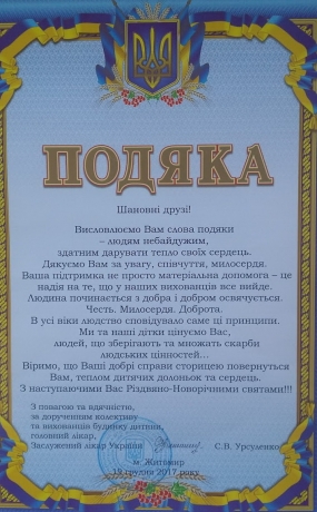 Przekazanie odzieży i zabawek do Żytomierskiego Wojewódzkiego Domu Dziecka
