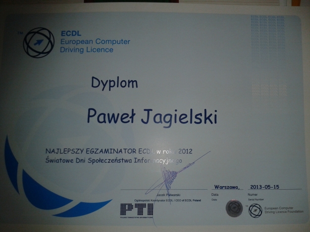 Nasz wykładowca Paweł Jagielski najlepszym egzaminatorem ECDL w Polsce!